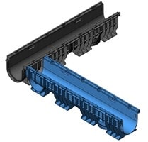 Продуманная технология и эргономика позволяют легко соединять лотки между собой под различными углами, используя доборные элементы. При необходимости есть возможность подключить лотки к водоотводам диаметром 11 или 16 см. Декоративно-защитная решетка, в составе стандартного комплекта, имеет ребристое антискользящее основание. Для последовательного соединения длинного ряда лотков есть паз для укладки герметика, который дополнительно гидроизолирует дренажную систему.