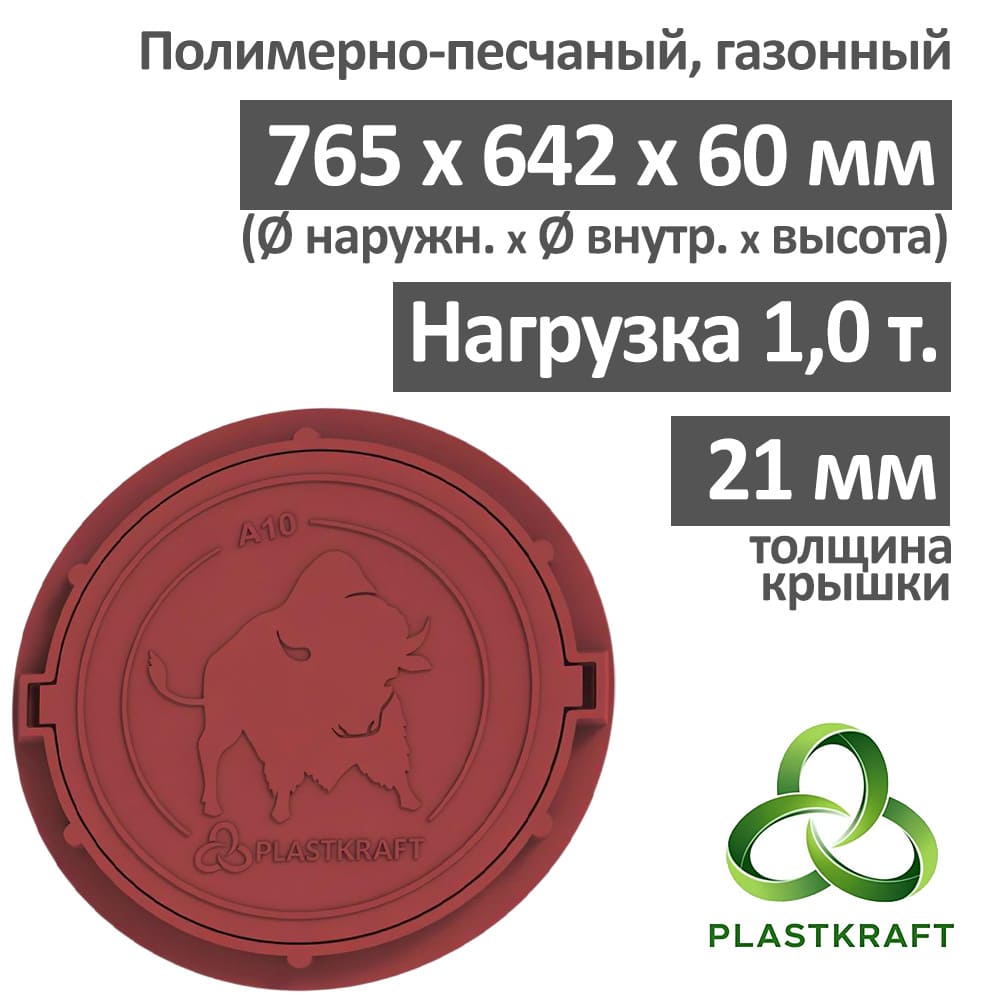 Люк газонный полимерпесчаный А10 (60/21), красный — заметный элемент для зон безопасности