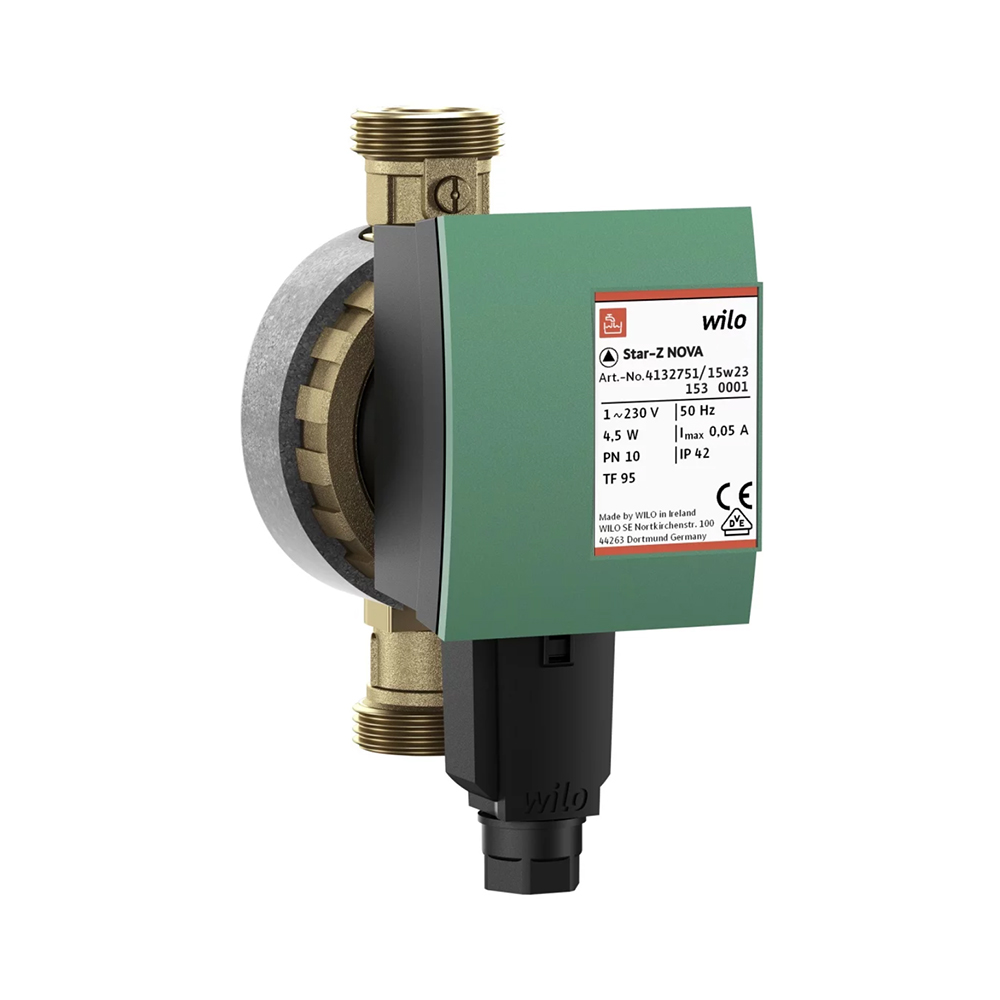 Насос циркуляционный Wilo Star-Z NOVA A – высокоэффективный насос с мокрым ротором для систем ГВС. На стороне всасывания в насос встроен шаровой запорный вентиль, а с напорной стороны - обратный клапан. Оснащен синхронным мотором, устойчивым к токам блокировки. Модель Star-Z NOVA A предназначена для перекачивания только питьевой воды. Используется также для осуществления гигиеничной циркуляции в системе обеспечения ГВС.Материалы: