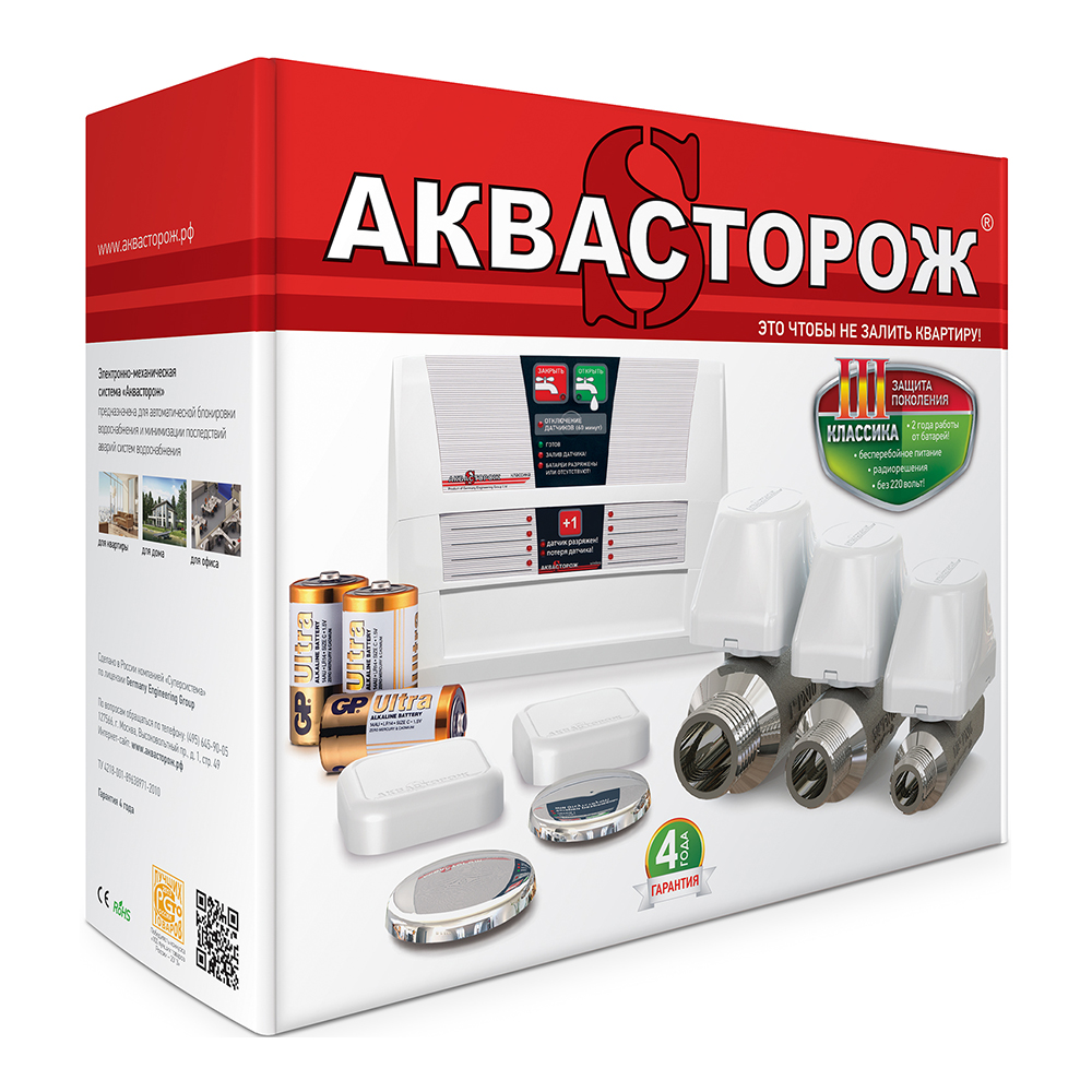 Система защиты от протечек воды Аквасторож КЛАССИКА 101 (ТН21) устанавливается в домах и квартирах, подключенных к системам водоснабжения. Главные отличия системы защиты от протечек «Аквасторож» от других аналогичных систем - работа при напряжении всего 4.5-5 В, моментальное перекрытие кранов (2.5 сек.), полная автономность до 9 лет, умный контроль датчиков с кранами, резервное питание. Система проста в использовании.