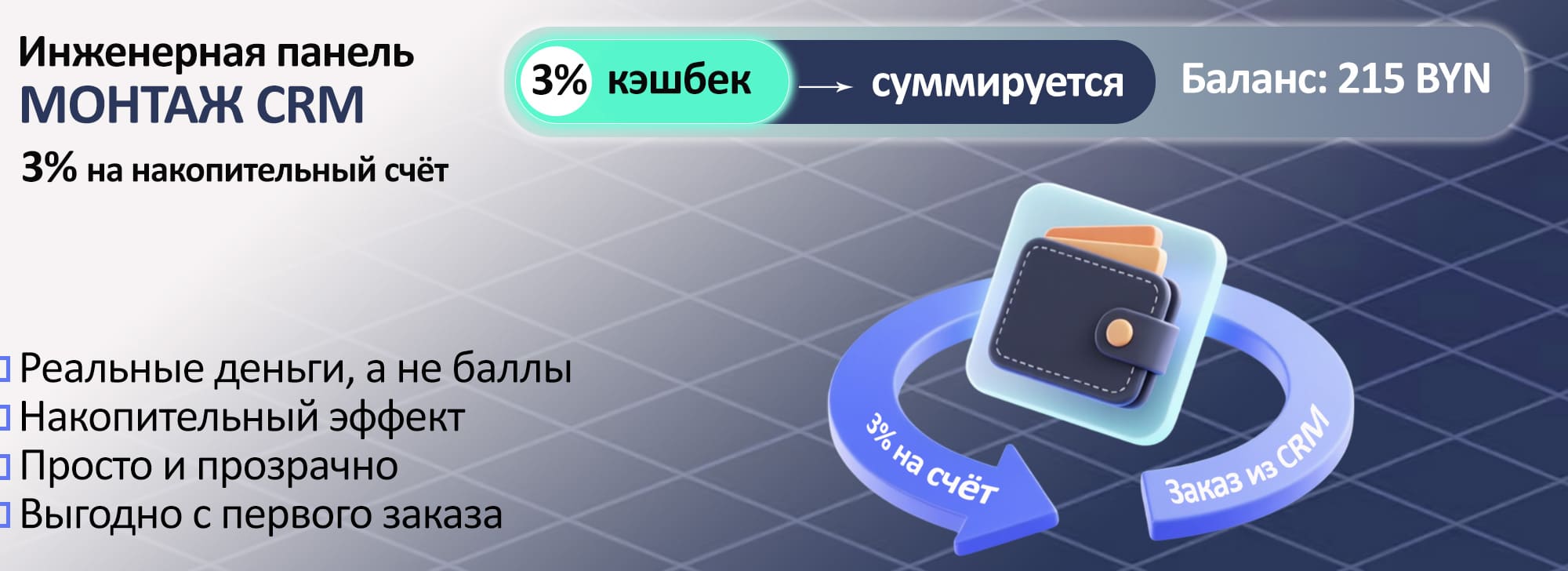 Оплачивайте часть заказа с накопительного счета. При следующем заказе через инженерную панель «МОНТАЖ CRM» вы можете частично или полностью оплатить его накопленной суммой.